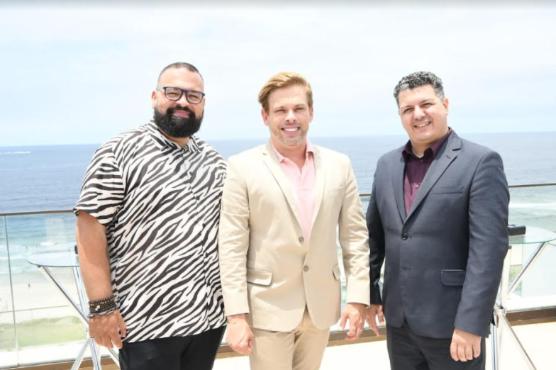 Foto 1: Da esquerda para a direita: André Eckhardt (assessor de marketing do grupo By OWN), Bruno Chateaubriand e Leonardo Lascentre (gerente geral do LSH by OWN LifeStyle Hotel)