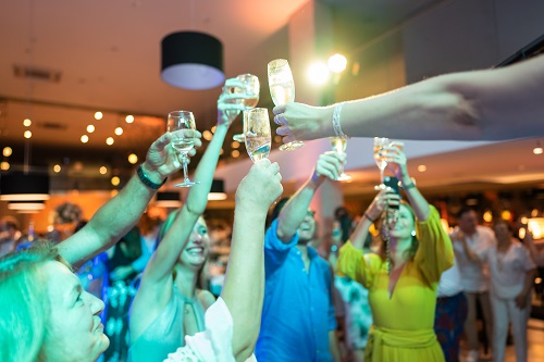 A celebração inicia às 20h com welcome cocktail no terraço do hotel. Os convidados desfrutarão de coquetéis, cervejas e drinks especialmente criados para a ocasião, além de um buffet de frios, queijos e pães especias de fermentação natural. O início da celebração será no terraço a céu aberto para que os convidados possam desfrutar de uma agradável noite de verão.