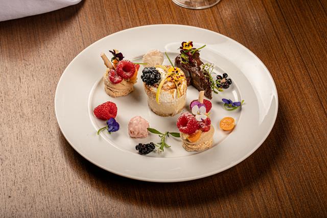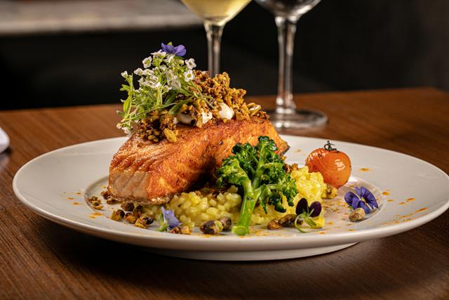 O chef Silvonei Souza elaborou dois menus de quatro tempos, incluindo uma versão vegana. No Trinitas, os casais serão recebidos com um couvert composto por tábua de queijos finos e grissinis. Como entrada, a sugestão é um creme aveludado de palmito, finalizado com chips de parmesão. Para o prato principal, há duas opções: medalhão de mignon com conchiglione recheado de maçã caramelizada ou filé de salmão em crosta de pistache, acompanhado de risoto de açafrão. As sobremesas, criadas pela chef pâtissier Líria Gabriel, formam uma seleção especial com trufas finas, tartelette de limão, fondant de chocolate Bahia e pavlova com frutas frescas.