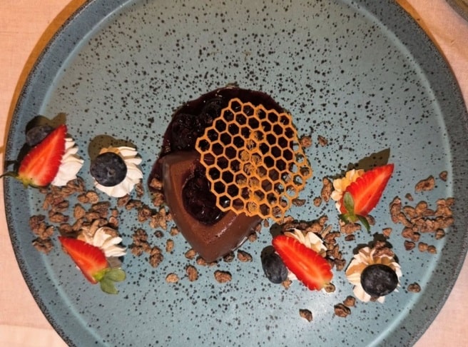 Para harmonizar, a carta de vinhos oferece uma seleção criteriosa de rótulos nacionais e internacionais, além de drinks autorais com mel de cacau, proporcionando uma experiência completa.
