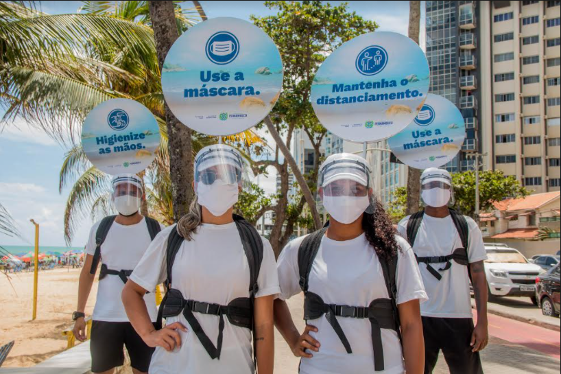 A partir do slogan “Viva este verão com cuidado. O coronavírus não está de férias”, a campanha colocará nas praias da Região Metropolitana e do Litoral Sul e Norte, durante todo o mês de janeiro, 72 promotores. Equipados de walkmídia, face shield, máscara e álcool em gel, os atendentes alertarão visitantes, transeuntes e pernambucanos sobre a importância dos cuidados necessários para evitar o contágio da covid-19.