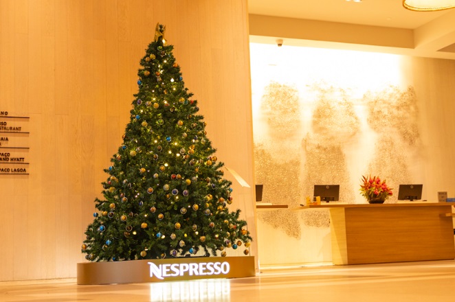 A árvore, que tem 1,80 m de diâmetro e 2,50 m de altura, utiliza em sua decoração quase 600 cápsulas, que se alternam entre as linhas Original e Vertuo, que substituem as bolas de natal e adornam o cordão de led.
