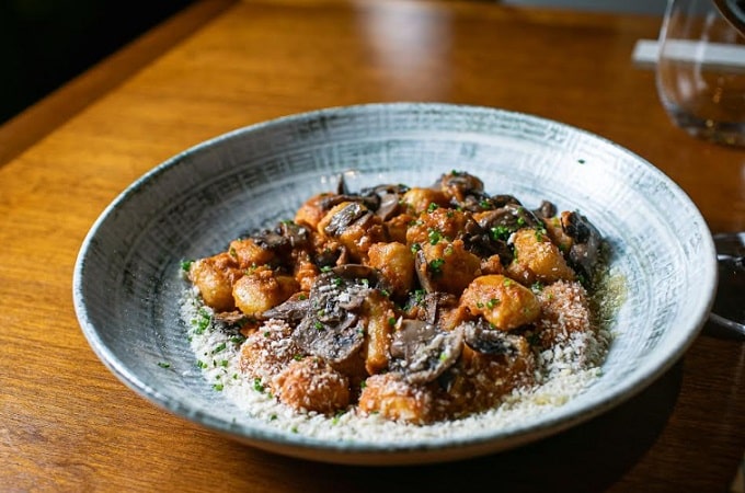 O cardápio também contempla alternativas vegetarianas e veganas, como o nhoque ao pomodoro com cogumelos grelhados e crocante de alho (R$ 52), e a porpeta vegana servida com mousseline de cabotiá e creme de espinafre (R$ 52).
