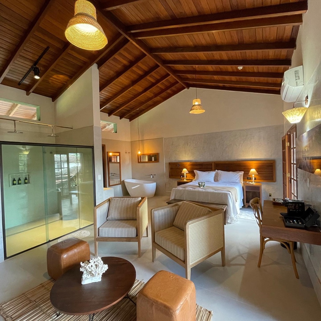 A infraestrutura exclusiva para casais adultos, promove um clima de sossego nas amenidades da piscina, bar e serviço de praia. São apenas 17 suítes para dar mais exclusividade aos hóspedes e um serviço muito atencioso e personalizado. Essa exclusividade permite uma qualidade de tempo única ao lado da pessoa amada. O pacote de estadia para duas pessoas inclui hospedagem na Suíte Hiu, de 70 m², com cama queen-size e varanda privativa. Já a Suíte Royal de 74 m2 conta também com uma ante sala, escritório e amplos armários.