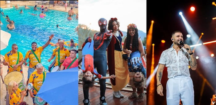 Reconhecido pelas festas temáticas e pelas atividades divertidas organizadas pela Turma da Alegria para todas as idades, o Hotel Vilarejo Praia mantém esse ritmo contagiante durante o Carnaval. A programação inclui customização de abadás, hidrolejo (hidroginástica animada), luau, desfile de fantasias, karaokê, aulas de dança, baile de máscaras, marchinhas e muitas outras atrações. Tudo isso no único all inclusive da região – com bebidas alcoólicas e não alcoólicas, lanches, petiscos variados e refeições completas –, com um moderno complexo aquático.