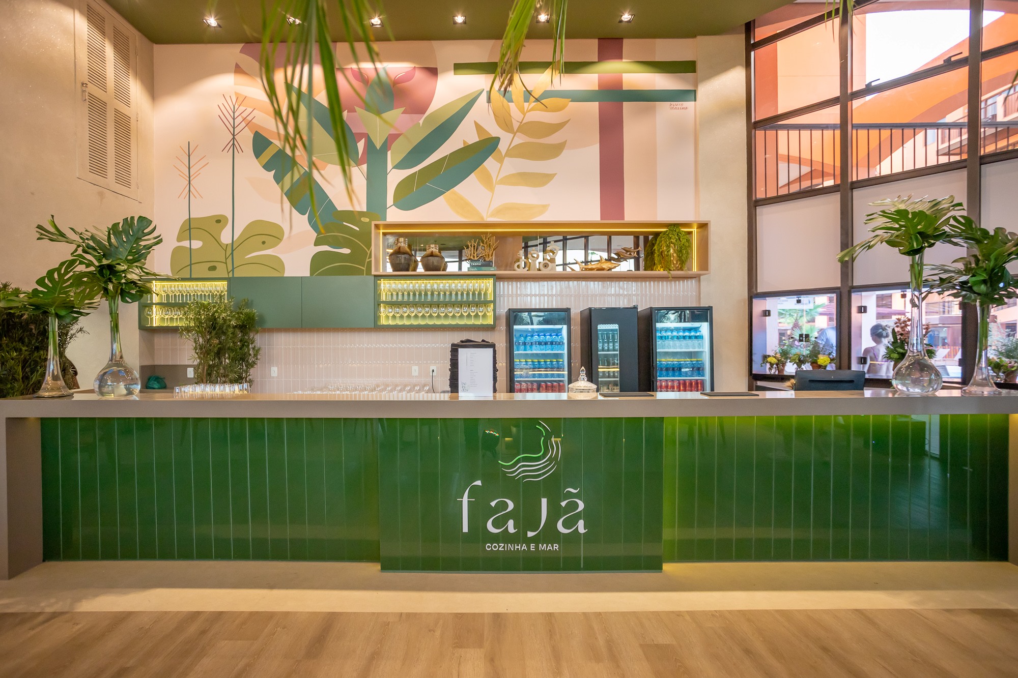 O ambiente do Fajã conta com decoração despojada e, ao mesmo tempo, aconchegante, com cores que remetem à natureza, trazendo muito conforto e sensação de bem-estar. A iluminação natural e o contato visual com a vegetação externa – e a poucos passos do mar – completam o cenário deslumbrante.