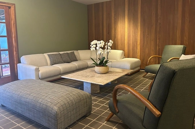 Já o ambiente, com tons da terra, traz texturas e aromas que evocam raízes, vento e folhas. Internamente, o projeto privilegia a luz natural, o silêncio e as vistas para o verde nativo. Saunas seca e úmida, jacuzzis com turbilhão, duchas escocesas e um solarium completam o convite à desaceleração.