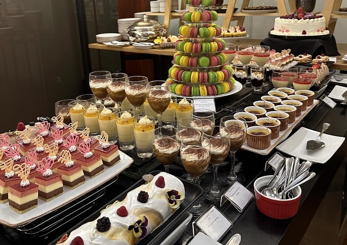 A mesa de sobremesas inclui torta Sacher, banoffee, Red Velvet, fudge de pistache e brownie com calda de doce de leite.