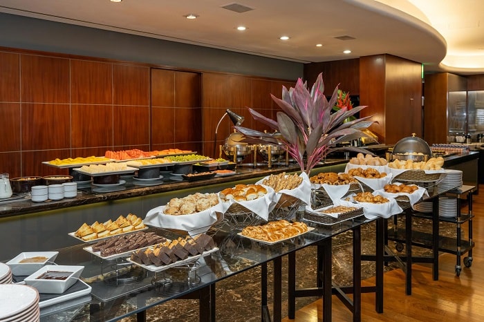 O menu, preparado pela equipe de Alimentos & Bebidas do hotel, combina clássicos da gastronomia internacional com toques brasileiros, contemplando desde pães artesanais e frios selecionados, opções de frutas frescas, sucos naturais, delícias de confeitaria e um menu asiático.