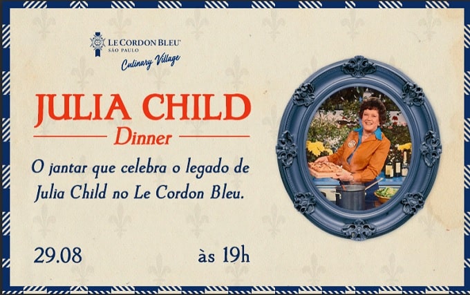 No dia 29 de agosto, o Le Cordon Bleu realiza um jantar especial em tributo a Julia Child — ícone da gastronomia mundial e uma de sua mais célebres alunas. A homenagem acontece no Culinary Village, espaço de experiências do Le Cordon Bleu São Paulo, com um menu inspirado nas receitas clássicas que marcaram a trajetória da cozinheira americana.