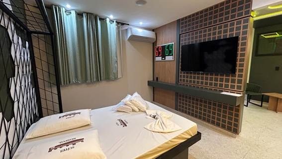 Com investimento de aproximadamente R$ 100 mil, a suíte “Pelada” levou seis meses para ser construída, incluindo a demolição do espaço anterior. O projeto é assinado pelo arquiteto Rodrigo Barreto e a decoração entra em campo: réplicas de troféus, detalhes que remetem ao universo do futebol e até uma peça de grama sintética fazem parte do cenário. A suíte conta com hidromassagem com cromoterapia, sala para refeições, barra de pole dance, TV Smart de 55 polegadas (perfeita para acompanhar os jogos), iluminação em LED e automação completa via Alexa. “Desde o lançamento e a divulgação nas redes sociais, a procura tem sido intensa. A suíte tem sido reservada diariamente por casais que unem a paixão pelo futebol”, destaca Alves.
