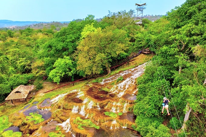 Para os mais aventureiros, o complexo da Nascente Azul oferece ainda o Adventure, com uma tirolesa de tirar o fôlego ao longo de 450 metros de extensão e uma vista privilegiada e o emocionante pêndulo humano, que leva o participante a desafiar os limites da gravidade.