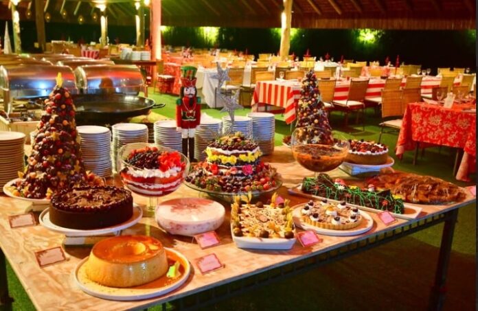À noite, os hóspedes são convidados para uma ceia natalina na Tenda de Eventos, com buffet completo que inclui entradas, pratos principais e sobremesas, além de bebidas variadas como espumante, vinhos, cerveja, sucos, água de coco e refrigerantes. A trilha sonora fica por conta de Serginho Passarinho e Banda A Lá Bangu, que embalam o jantar com música ao vivo.