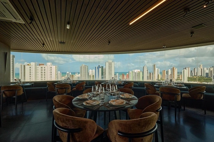 Menu assinado pelo premiado chef Erick Jacquin, restaurante conta com música ao vivo e um visual 360° da capital paraibana