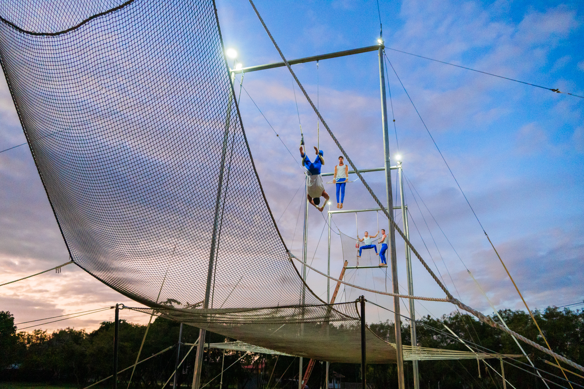 Durante 6 dias na semana, profissionais circenses ensinavam os saltos e manobras permitindo que os mais aventureiros experimentassem a sensação de voar, em meio ao cenário do Park, que tem mais de 20 mil m² de área verde. Um dia na semana, o espetáculo ficava por conta dos professores, que faziam apresentações de tirar o fôlego.
