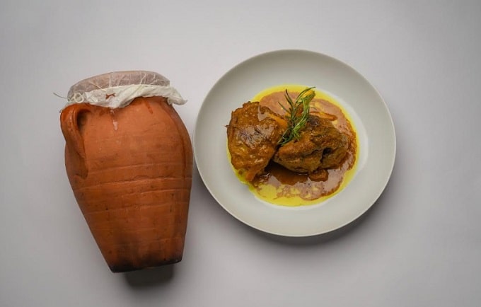 Entre o clássico e o contemporâneo, o chef, em virtude de um percurso único e pela sua ampla e premiada experiência, propõe uma gastronomia marroquina reimaginada. Assim, os pratos tradicionais são reinterpretados com ingredientes ousados e inéditos, como a famosa pastilla de lagosta com espinafre. Saladas aromáticas, cuscuz com carne e verduras, tagines e a típica tanjia de Marrakech destacam-se no menu. Sobre a tanjia, a ntes de ser um prato é um pote de barro utilizado para cozinhar, de forma lenta entre brasas de carvão, legumes e carne de vitela, envolvidos por especiarias selecionadas, como cominho e açafrão.