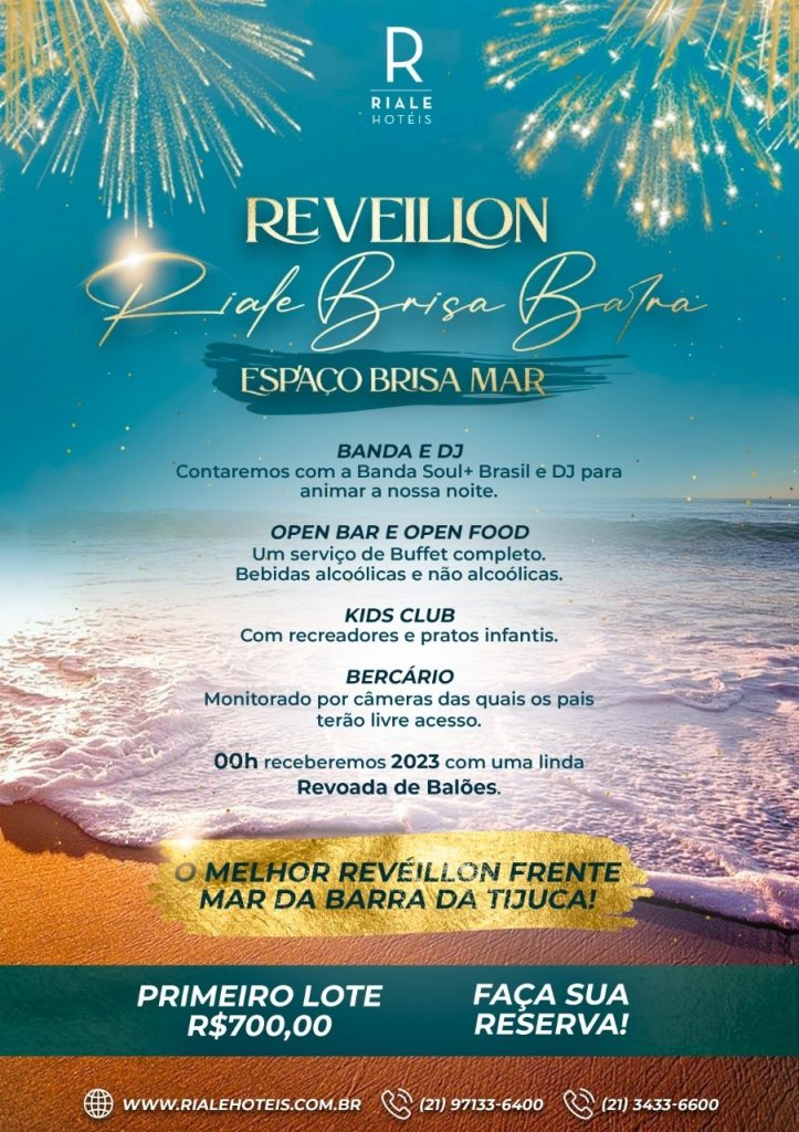 O Riale Brisa Barra está organizando uma grande festa para esperar 2023 em grande estilo. O evento será realizado no Espaço Brisa Mar, com uma exuberante vista para o mar da Barra da Tiuca.