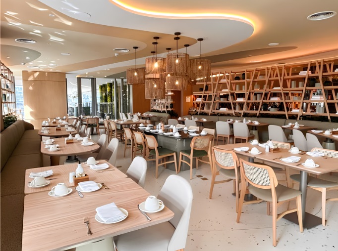Aberto tanto para hóspedes quanto para o público externo, o Quint.e tem capacidade para 130 pessoas no restaurante e 25 no bar Quint.e. Com a assinatura de grandes nomes do cenário nacional, reúne a criatividade da chef Bel Coelho, a liderança de César Cannizza e a coquetelaria autoral de Marcelo Serrano, em uma proposta que alia sofisticação e brasilidade. O projeto arquitetônico, assinado por Jayme Bernardo, valoriza a biofilia com formas orgânicas, tons terrosos e texturas naturais, criando uma atmosfera elegante e acolhedora que acompanha o público da manhã à noite.