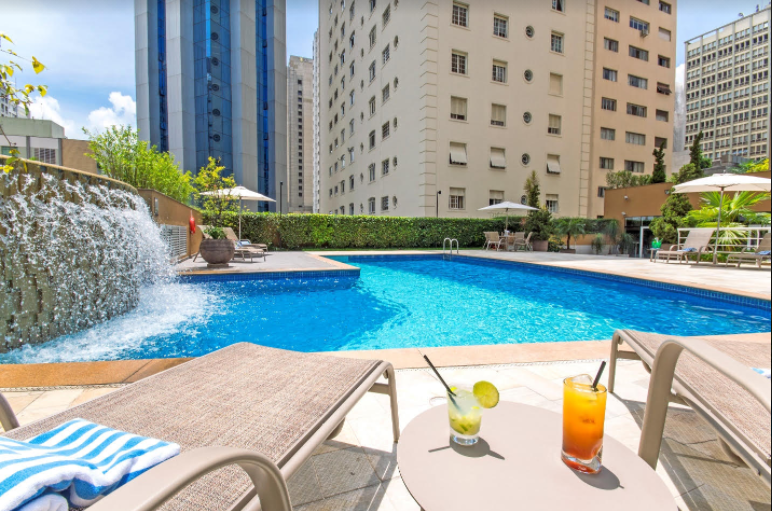 Quem optar por combinar almoço e hospedagem encontrará no hotel suítes elegantes e confortáveis, com um ou dois dormitórios e metragens entre 28 m² e 54, equipadas com cozinha americana (micro-ondas, cafeteira e frigobar), wi-fi, ar-condicionado, cofre individual e mesa de trabalho. No térreo, há um charmoso deck, com piscina com cascata e espreguiçadeiras, que podem fazer o hóspede esquecer por alguns instantes que está no meio da agitação da metrópole. Estão disponíveis também ducha circular, sala de repouso e moderna academia.
